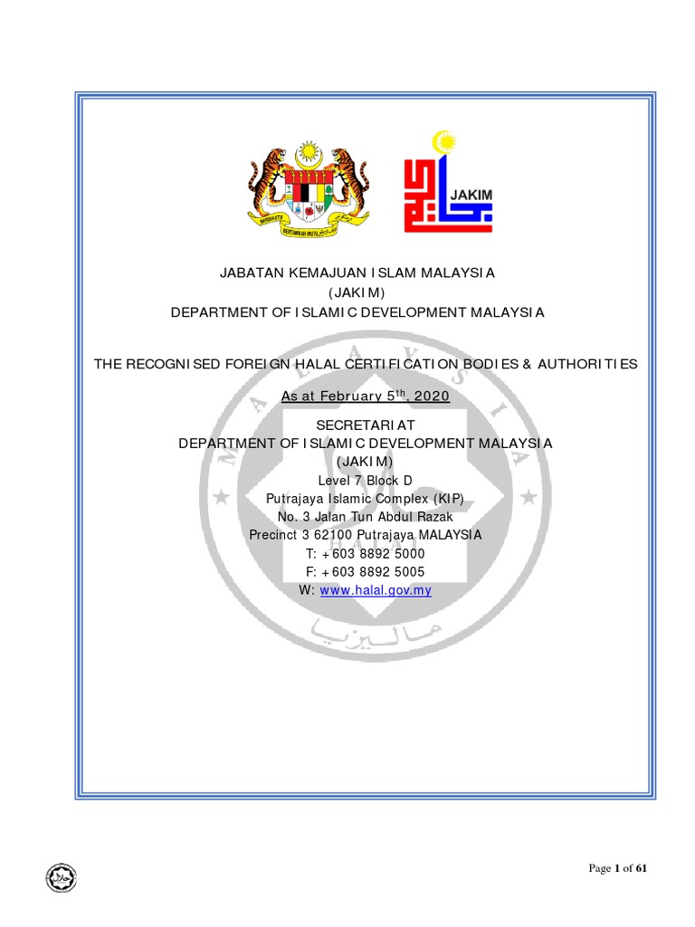 Recognised Halal Certification Bodies Jakim Pdf Abrahamic Religions Religion And Belief